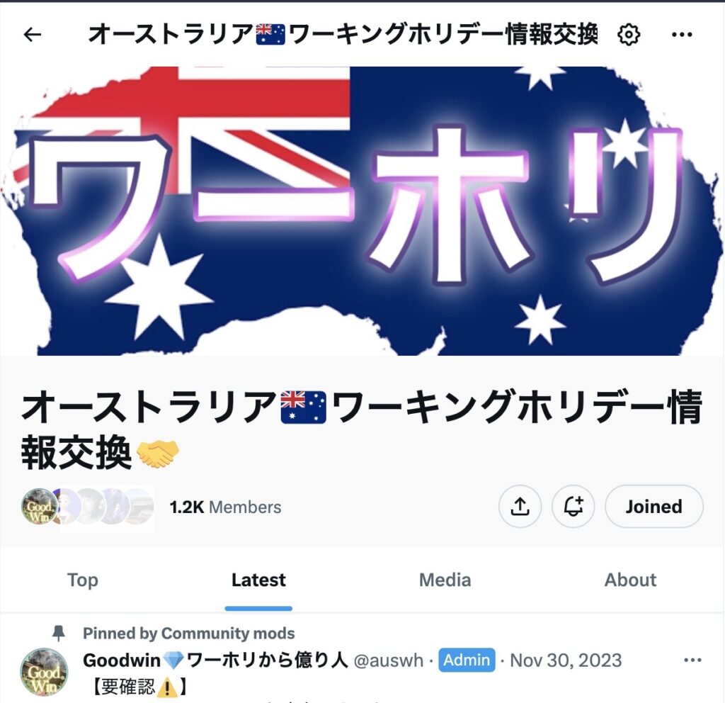 X (旧Twitter)上で最大のオーストラリアワーホリ向けのX(旧Twitter)コミュニティを運営しています!